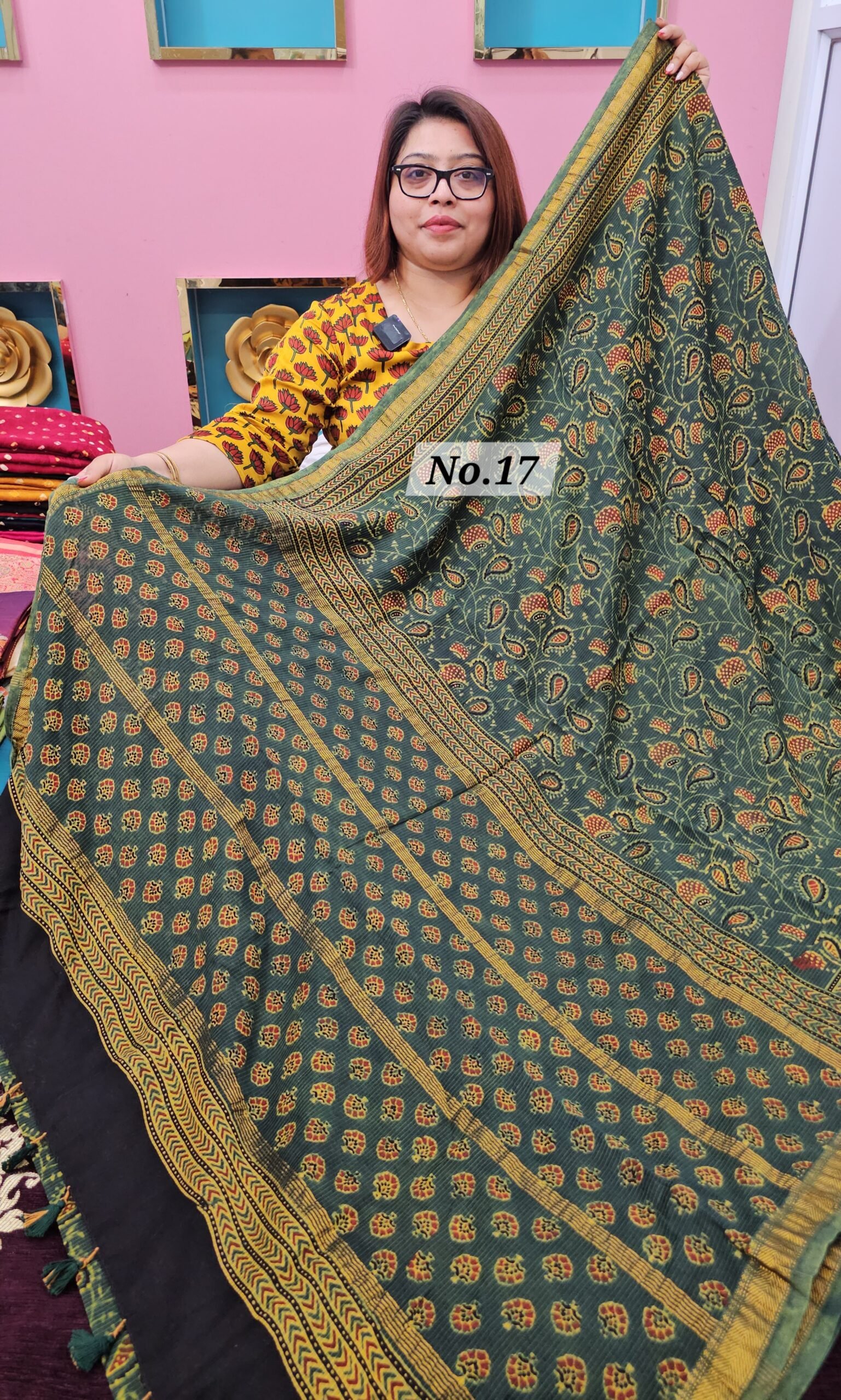 16TH APRIL LIVE – PURE CHANDERI MAHESHWARI AJRAKH SAREE (NO.17)