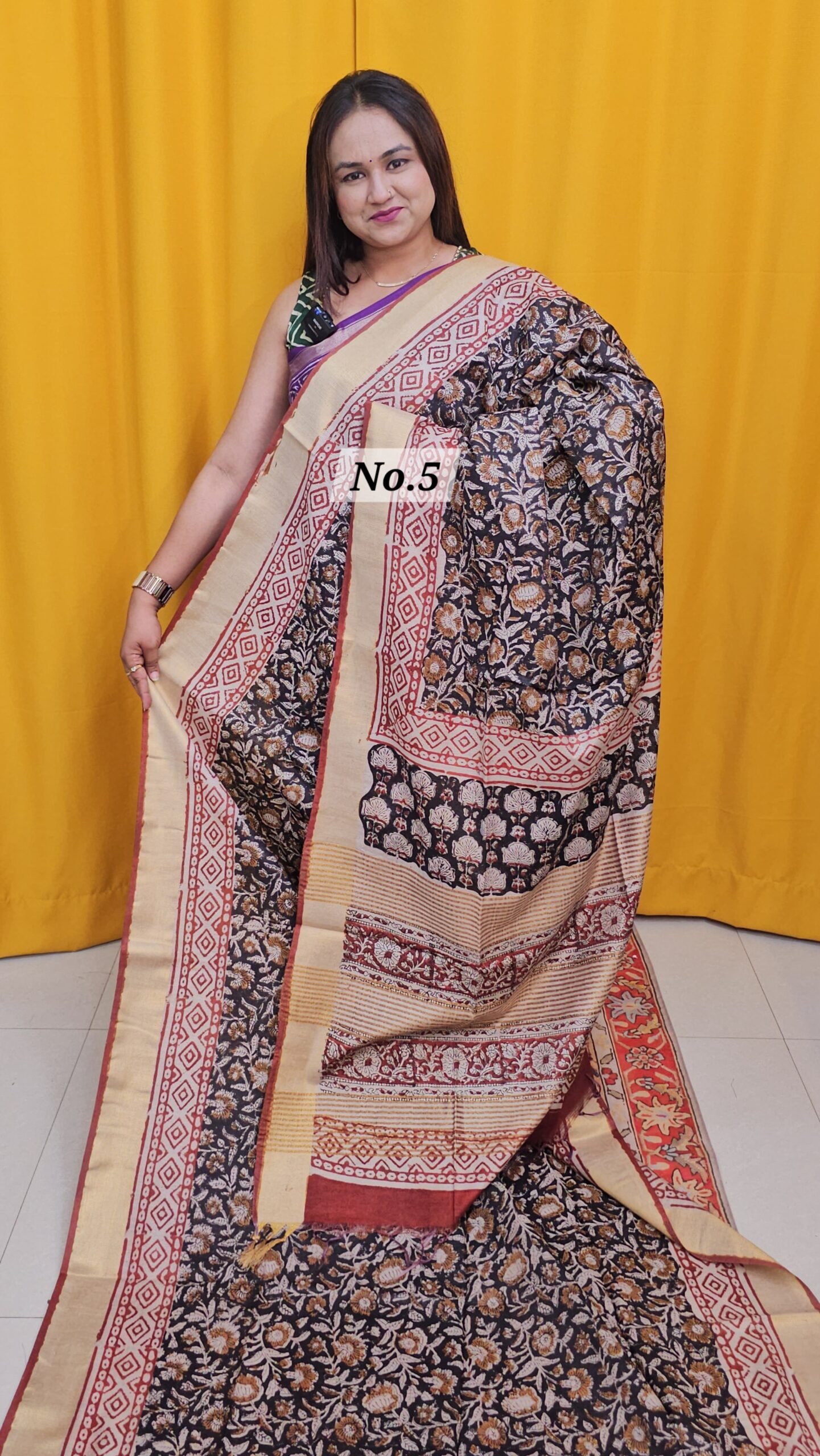 21ST APRIL 2NDLIVE – MAHESWARI TUSSAR BLOCKPRINT SAREE (NO.5)