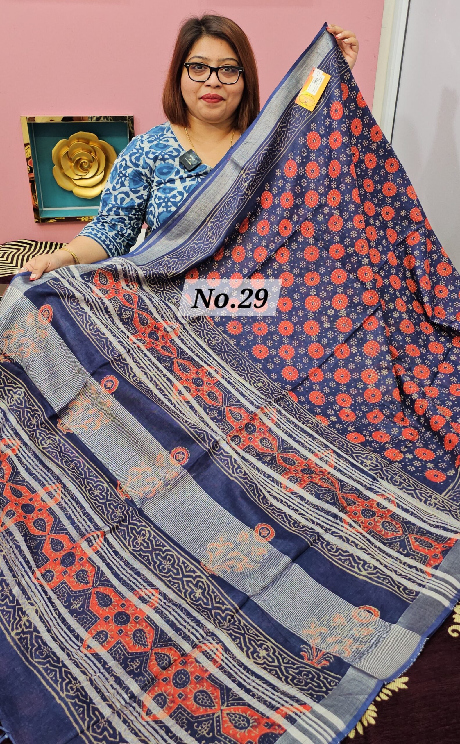 21ST APRIL LIVE – HANDBLOCK LINEN COTTON SAREE (NO. 29)