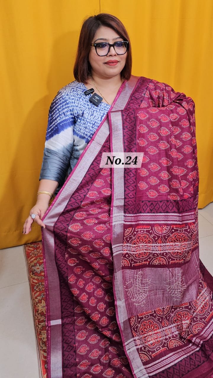 23RD APRIL LIVE – HANDBLOCK LINEN COTTON SAREE (NO.24)