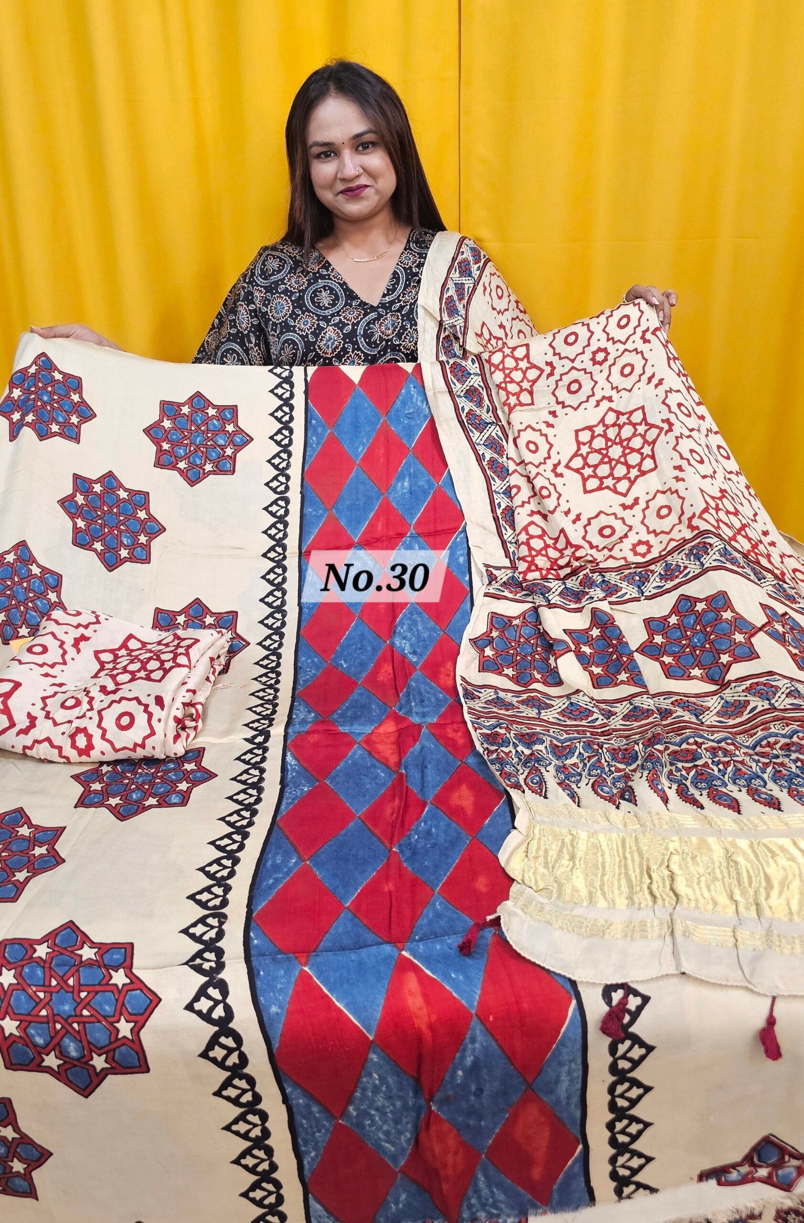 👉 Product Nature DisclaimerMinor cuts, loose threads, or irregularities are normal in handwoven sarees.Handblock prints may have slight uneven patterns or minor dye marks — these are not defects but part of the craftsmanship.